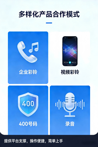 企业彩铃、视频彩铃、号码认证、400号码多种产品支撑